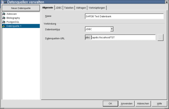 Einbinden von SAP-DB in OpenOffice.org mit Hilfe von JDBC